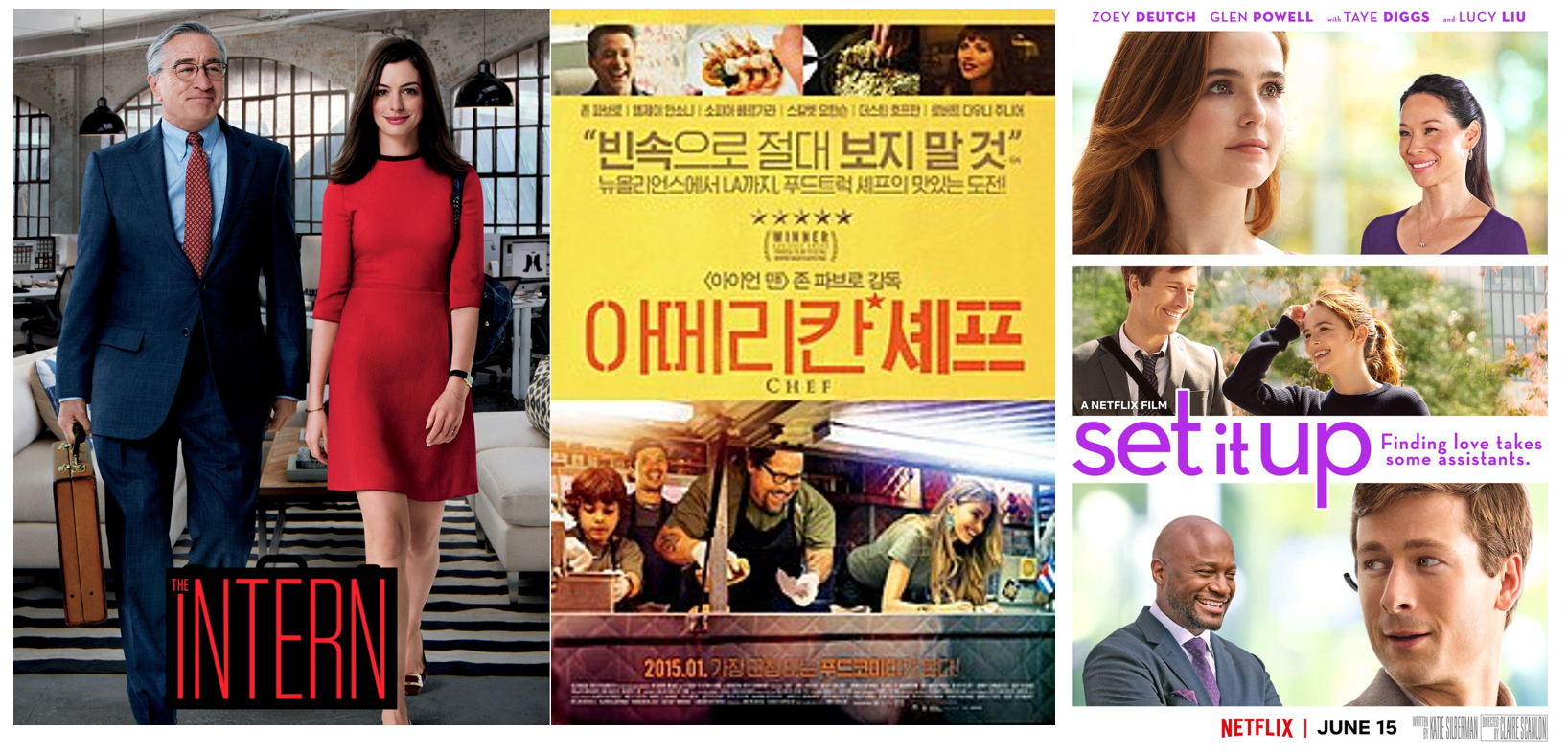 영화로는 '인턴', '아메리칸 셰프', '상사에 대처하는 자세' 등이 많이 돌려봐도 지겹지 않더라고요.